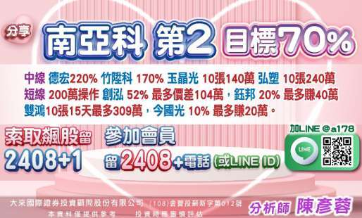 預告 南亞科 (2408-TW),2 個月翻倍 120%。【南亞科 第 2】,即將發動目標翻倍,加 line 留言【777+2】索取。