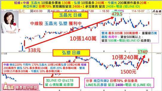 賀本欄預告 竹陞科 (6739-TW) ,德宏 (5475-TW),國精化 (4722-TW),金居 (8358-TW),南電 (8046-TW) 全部兩個月翻倍 100%。雙鴻 (3324-TW)15 天大漲 309 元! 東元 (1504-TW)1.5 個月翻倍 100%! 想要領先於 每天早上九點前 得知當天誰有機會長紅漲停? 1-2 個月後資金翻倍 100%,歡迎點下面連接 加 LINE 留言 777+1 可領先得到提醒。