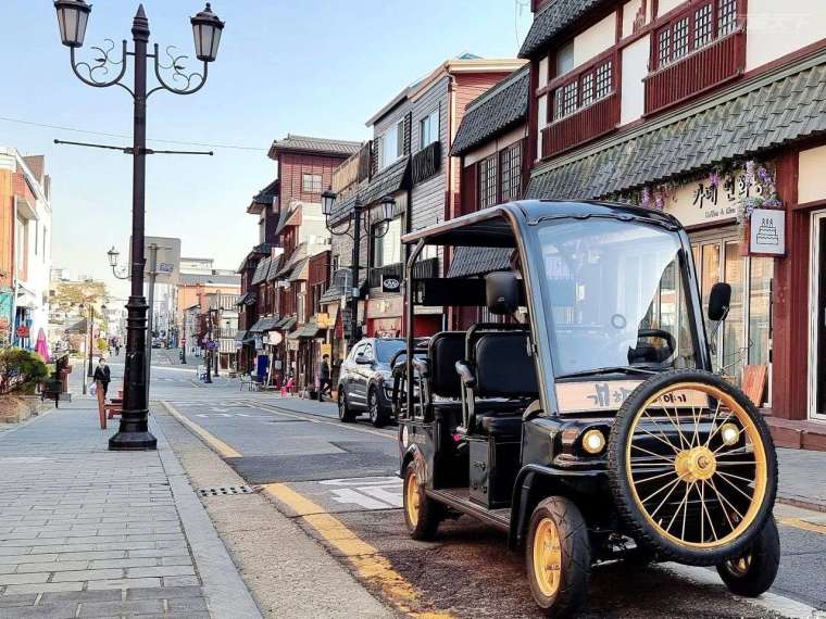 08▲搭乘可愛造型的開化風情單車遊玩松月洞童話村,別有一番童趣。