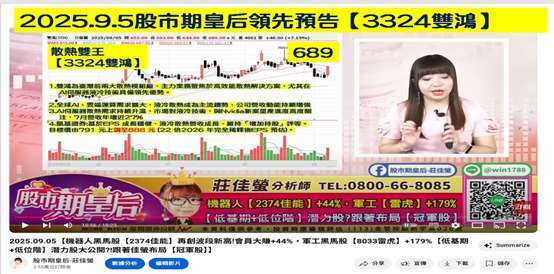 2025.9.5 節目領先預告 (3324-TW) 雙鴻,689=>996
