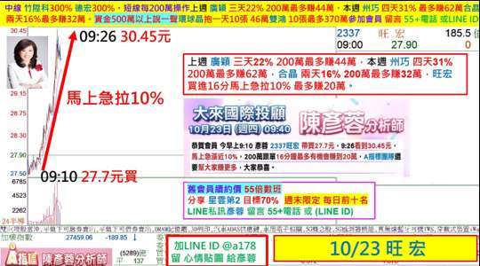 大來投顧陳彥蓉表示,美股受財報週影響震盪,但降息資金延續有再推升新高機會;台股受 9 月外銷訂單金額創高,及多家機構預估經濟成長率上調至 5.4% 之上,經濟數據創佳有再新高時候。權值股短期震盪,一定要懂得汰弱留強,轉換有大咖的中小型股。連假前回檔,誘空軋空手將再現翻倍股!現在登記新會員優惠用舊會員續約價,週末限定,邀您相約 31K 獲利翻倍見!