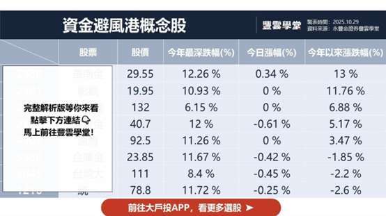 資金避風港概念股 – 大戶投 APP 看更多選股