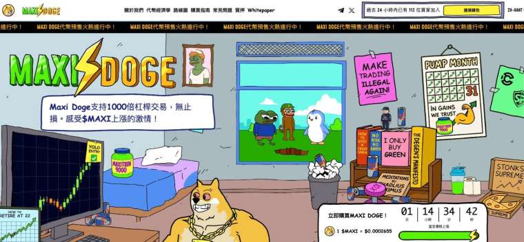 如果說 Bitcoin Hyper 代表技術突破,那 Maxi Doge($MAXI)則象徵文化與敘事的爆發。這個誕生於 2025 年的新狗狗主題代幣,以「極限鍛鍊、瘋狂槓桿」為品牌核心,將迷因精神與交易文化結合,挑戰狗狗幣與柴犬幣長期壟斷的迷因領域。