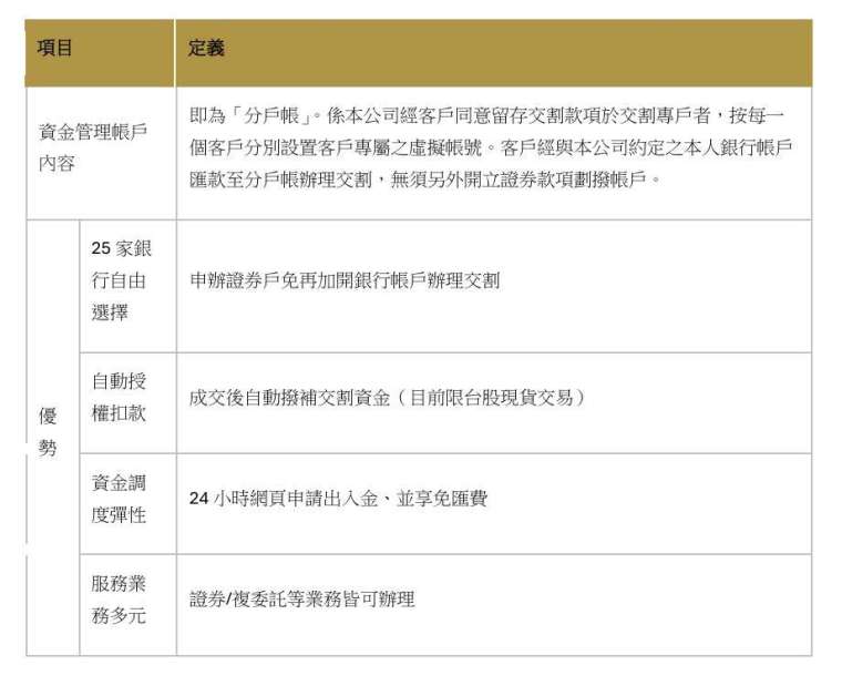 註 2. 此篇內容為資金管理帳戶簡介,相關辦法須依各家銀行及官方網站說明為主。