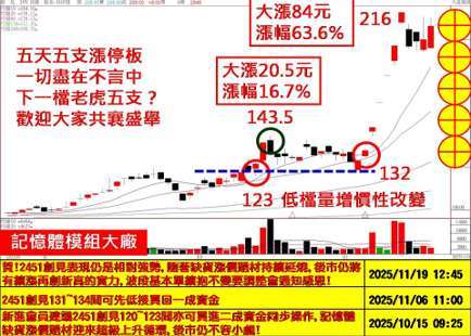 拉回新主流誕生的機會,很重要!你一定要知道,大師兄都幫你準備好了…♦️創見 + 63% 五天五支漲停⊕⊕⊕⊕⊕… 會員賺到翻你一定也知道,下一檔【老虎五支 xxxx】?請霸氣跟上最強的就對了,只要一根漲停找回你的信心,聯絡我【11 月特快車】後來居上