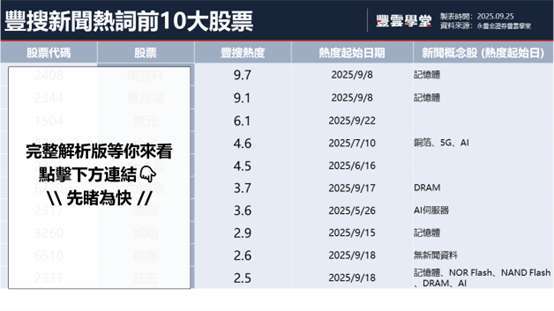 【豐搜】記憶體回檔,誰接棒抗跌?AI、軍工、被動元件最新焦點懶人包 (內文含10大新聞熱詞股票)