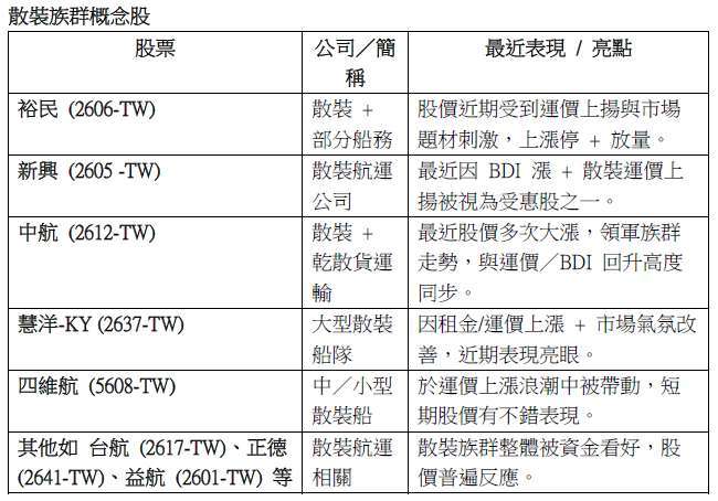 - 運價與租船市場回暖:有報導指出,海岬型船 (Capesize) 日租金在最新一週上漲約 22%。