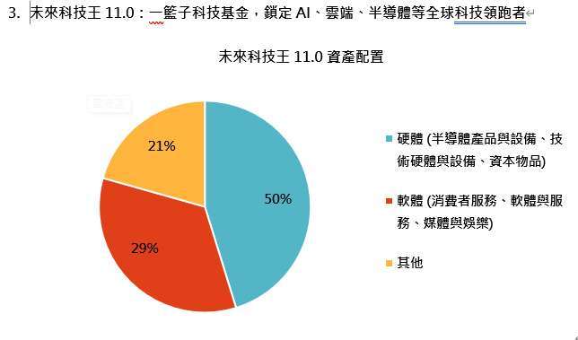 想跟上全球科技浪潮、站在主流舞台,「未來科技王」正是為此而生的投資組合。組合嚴選三檔全球科技基金+一檔台灣科技基金:一方面把握國際科技大廠的成長與影響力,另一方面也布局台灣在半導體與 AI 供應鏈的關鍵地位;再搭配數位轉型、前瞻科技等主題,讓投組在追求成長的同時,也能做到跨市場、跨題材的分散配置。值得注意的是,科技類資產雖然長線機會多,但價格波動通常也比較大,所以更適合用「投組」的方式參與趨勢,而不是追著短線消息進出。本季投組基金表現亮眼,因此維持原有配置,不做調整。