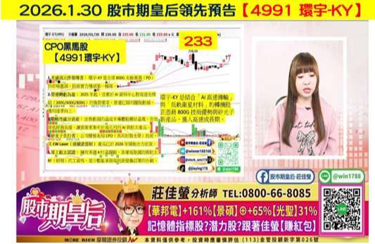 2026.1.30 股市期皇后領先預告 (4991-TW) 環宇 -KY
