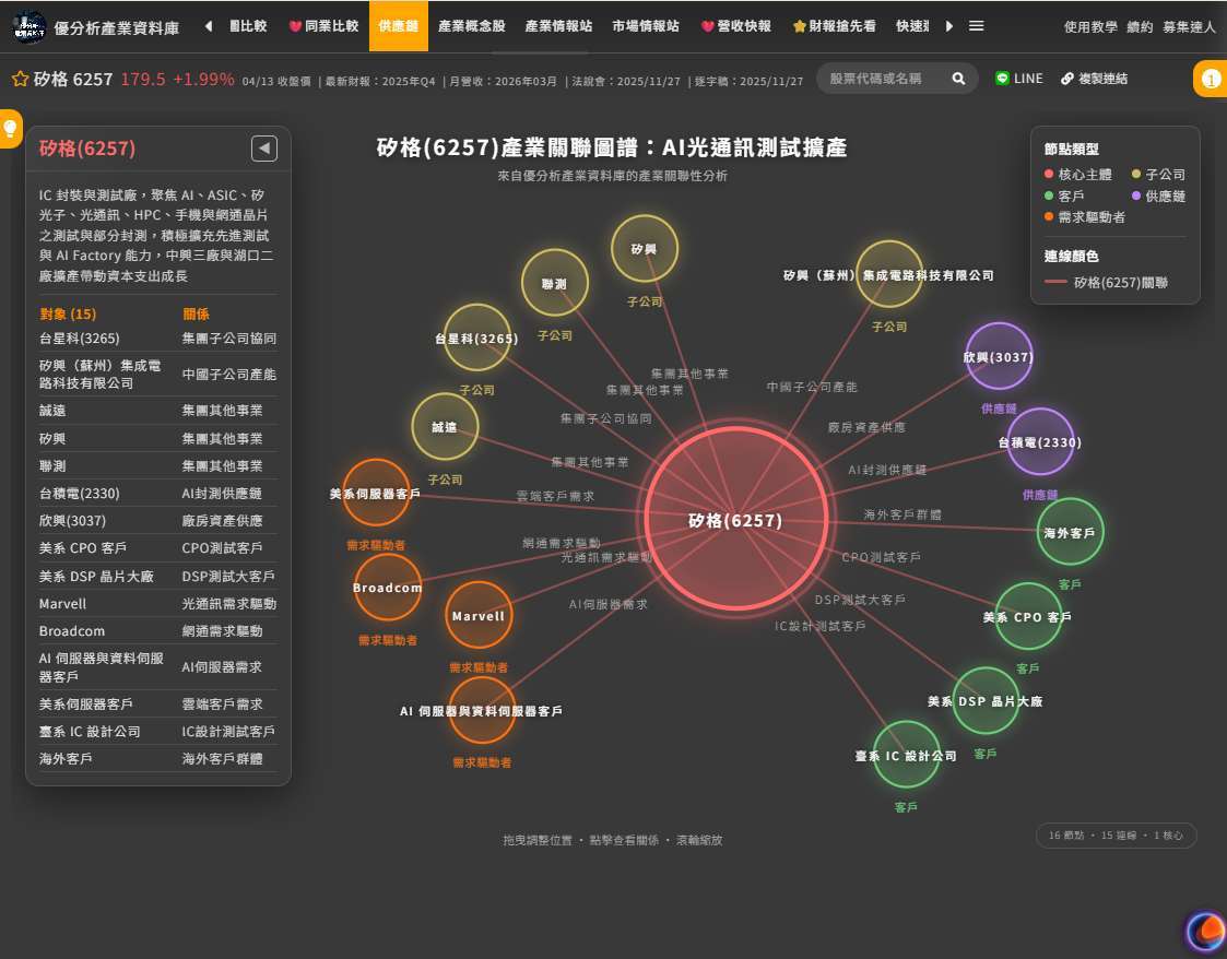 而矽格(6257-TW)也有著這樣的機會,矽格是一家以「高階 IC 測試為主、封裝為輔」的半導體封測廠,專攻 AI/HPC、手機、網通、車用與矽光子等高複雜度晶片測試。