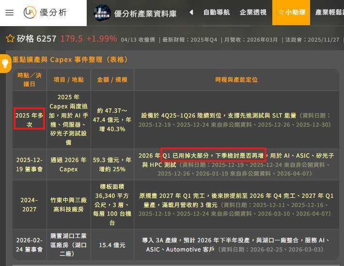公司做投資都是要賺錢,而為了滿足市場接下來的產能需求,公司也不斷上修資本支出的金額,這其實也反映著AI高階產品及CPO光通訊相關的需求比公司原來以為的還要多,導致公司需要不斷隨著訂單需求滾動式的調整支出節奏。