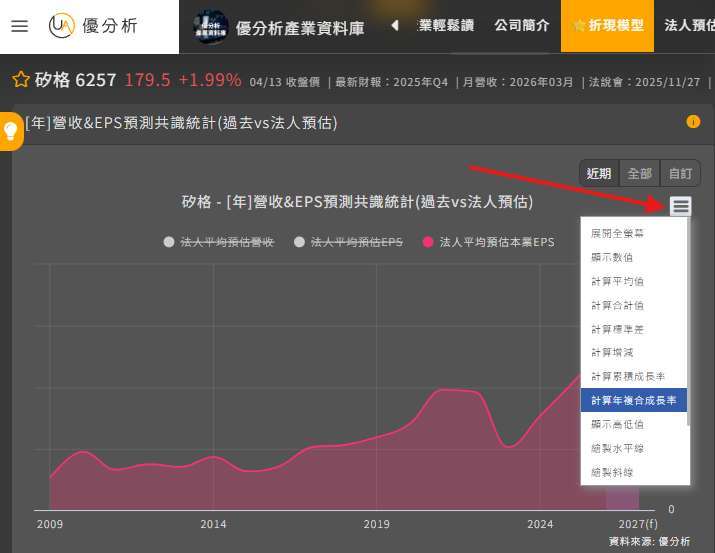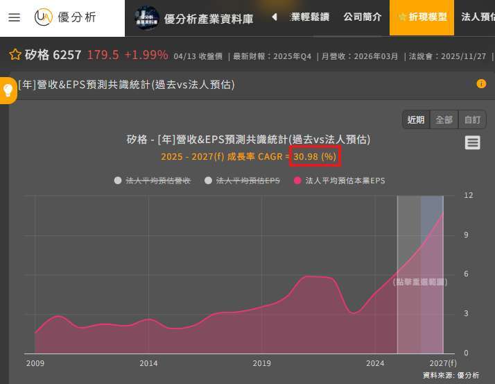 目前法人估到2027年,我們把2025年當作起點、2027年當作終點,算出來年複合成長率是30.98%,這個數字還不要急著填到第二格,我們等等會用到。