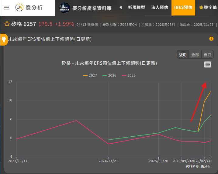 打開法人預估或是IBES預估都會出現法人調整獲利預估數值的紀錄,之後可以持續追蹤公司是否在下一季要再次提高資本支出的消息。